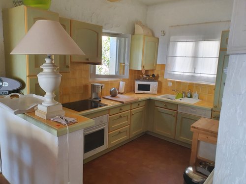 Uitgeruste keuken: keramische kookplaten, koelkast, oven, wasmachine, percolator, magnetron