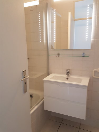 Volledig ingerichte keuken met vaatwas, ijskast met diepvriesvak, combi-micro-oven, keramisch vuur, koffiezet, waterkoker, senseo enz.
