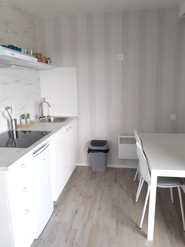 Studio volledig gerenoveerd, ingericht voor 4 personen, geïntegreerde keuken, badkamer met ligbad, lavabo en wc.