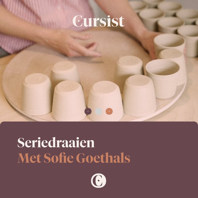 In deze cursus leer je vlot en efficiënt gebruiksgoed in serie draaien op de pottenbakkersschijf. Je leert om spiergeheugen op te bouwen, enkel de noodzakelijke handelingen uit te voeren en dus snelheid te maken bij het draaien van een serie tassen, kommetjes, bowls, borden en kopjes. Afwegen, meten, precies draaien en vooral veel oefenen, en voor je het weet maak je de mooiste series gebruiksgoed.