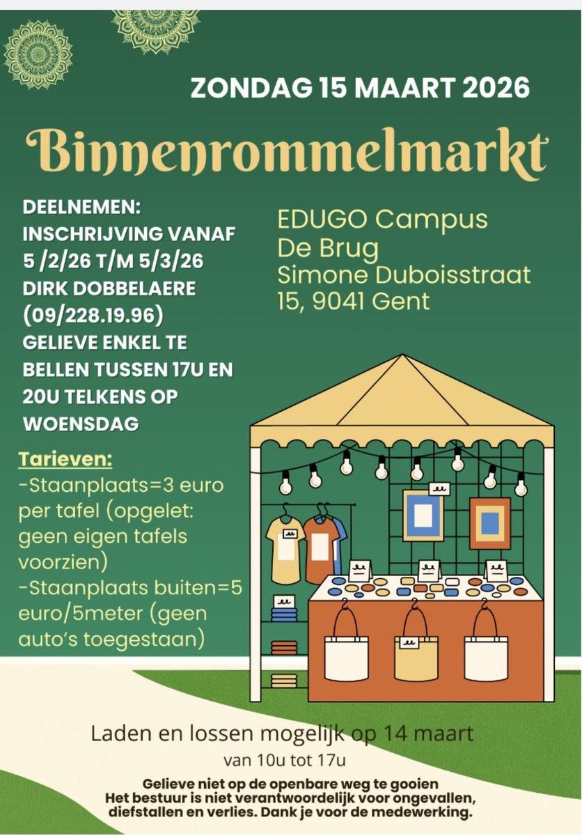 | Grote Binnen rommelmarkt Atheneum Gentbrugge - meer dan 100 standen (Van 14 tot 15 maart - Gentbrugge) | |
