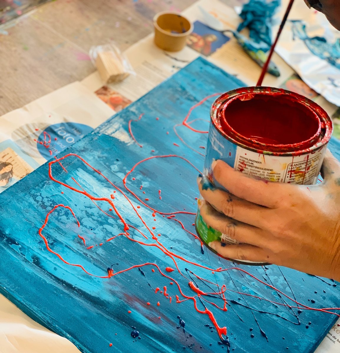 ✔️ Een ruim atelier met professionele begeleiding en zelfs een buitengedeelte om te spatten en te gooien met verf