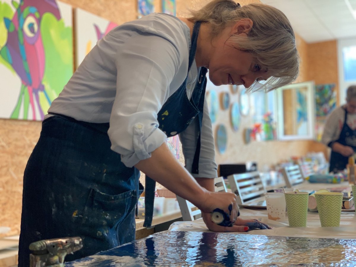 Je leert verschillende pouringtechnieken met acrylverf, additieven en siliconen, live gedemonstreerd door onze begeleider.
