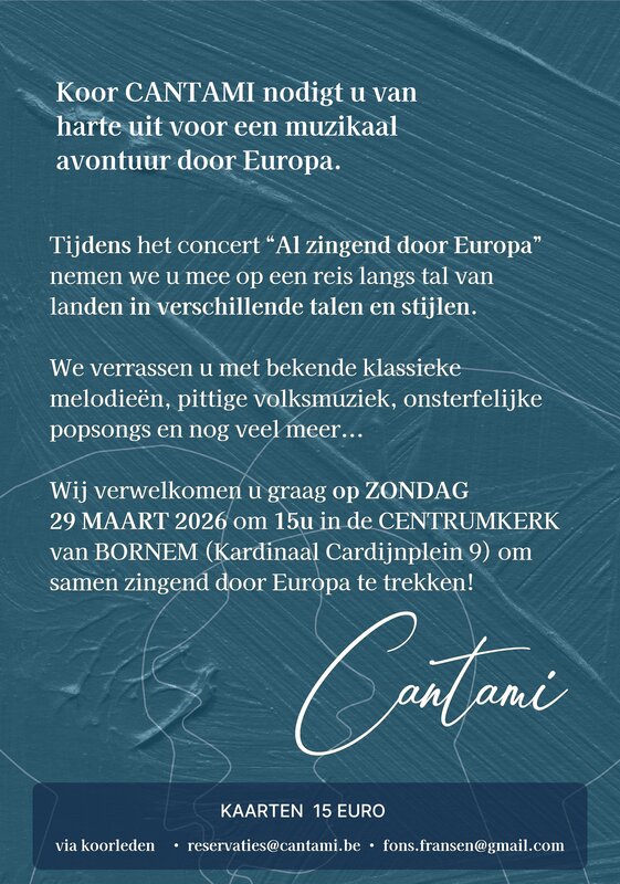 Koor Cantami nodigt u van harte uit voor een muzikaal avontuur door Europa.