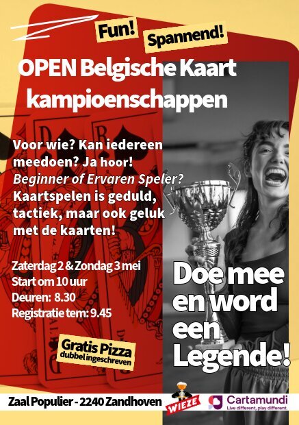 Trek je beste kaarten en kom naar het Open Dubbel Kaartweekend in Zandhoven.