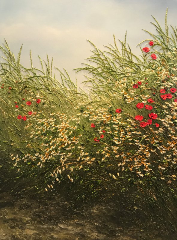 Weelderige korenvelden, wilde bloembermen en kleurrijke bloemboeketten