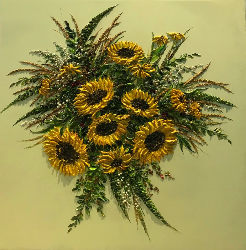 Het subtiel effect van licht en schaduw geeft de bloemenschilderijen een heel bijzondere uitstraling.