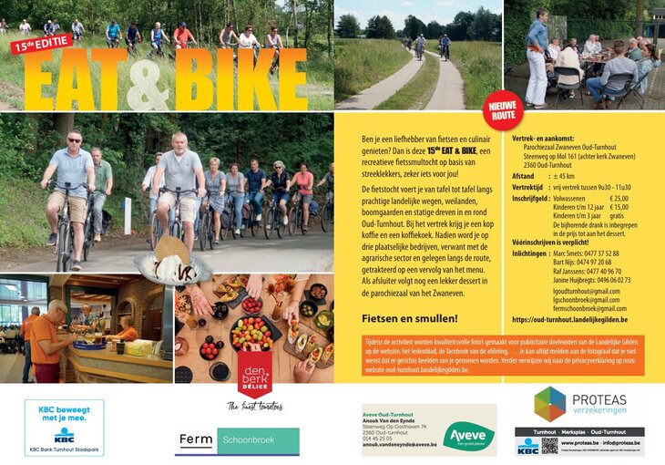Na een succesvolle editie in 202 en 2025, wordt de 15e Eat & Bike fietstocht opnieuw georganiseerd met eenzelfde concept: