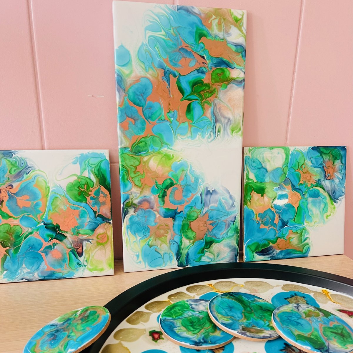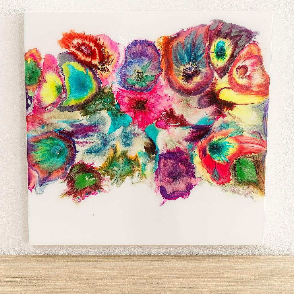 Tijdens deze workshop leer je werken met alcoholinkt op epoxy: een combinatie van kleur, vloei en intuïtie. Door te blazen, druppelen en geluk laat je kleuren op een natuurlijke manier in elkaar overlopen. Geen vooraf bedacht beeld, maar een proces van loslaten en ontdekken.