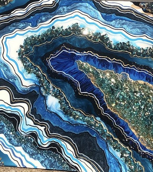 In deze workshop leer je hoe je een imitatie marmer kunt toepassen en hoe je fijne lijnen in je epoxy kunt brengen met een prachtige goudafwerking. Indien gewenst, kun je ook steentjes aankopen en gebruiken in je werkstuk. Ons atelier heeft een breed scala aan kleuren en maten steentjes beschikbaar.