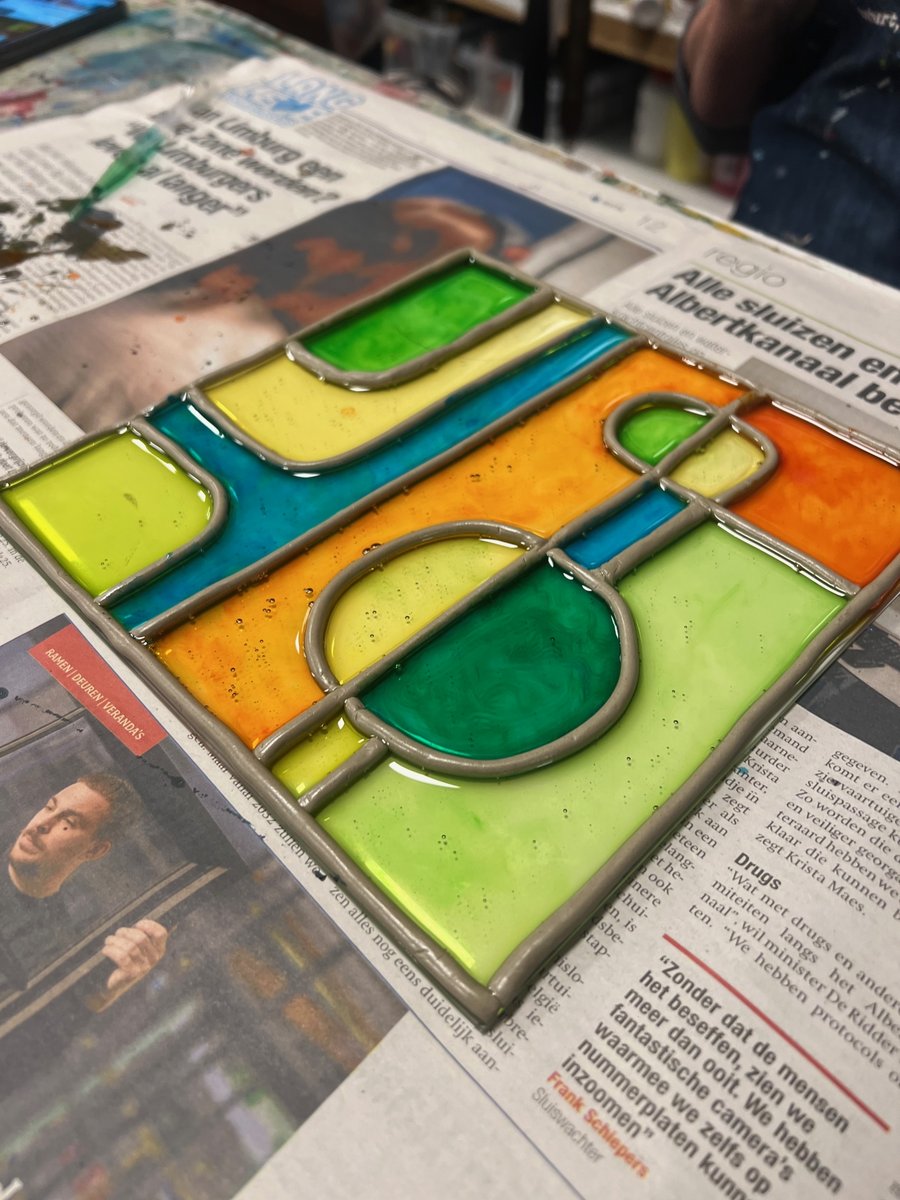 Je ontwerpt je eigen patronen of kiest uit ons aanbod. Met twee-componenten klei maken we een geraamte. Nadien vullen we het op met epoxy in verschillende tinten en transparantie graden. Zo ontstaat er diepte in je glasraam.