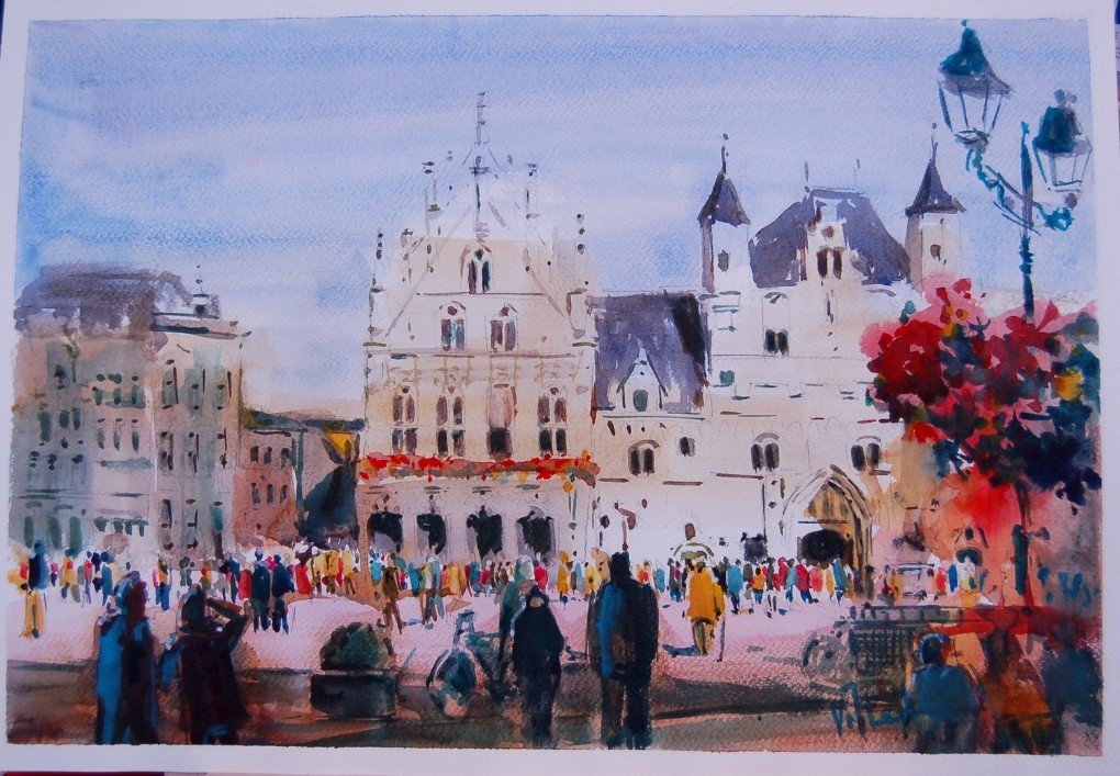 Ludo Van den Heuvel (Tisselt) is sinds 1992 docent aan het Willebroeks Kunstatelier. Als aquarellist kent hij de kneepjes van het vak om met een subtiele toets de sfeer van drukke straten, stille landschappen en vergankelijke momenten te vangen. Zijn schilderijen getuigen van een uitzonderlijk gevoel voor licht, kleur en atmosfeer en nodigen uit om stil te staan bij de vluchtigheid van elk moment.