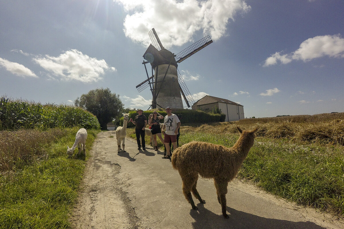 Ga met ons mee op alpaca-wandeling door de ongerepte natuur van Den Derwindecke, met zicht op de molen. 🌾