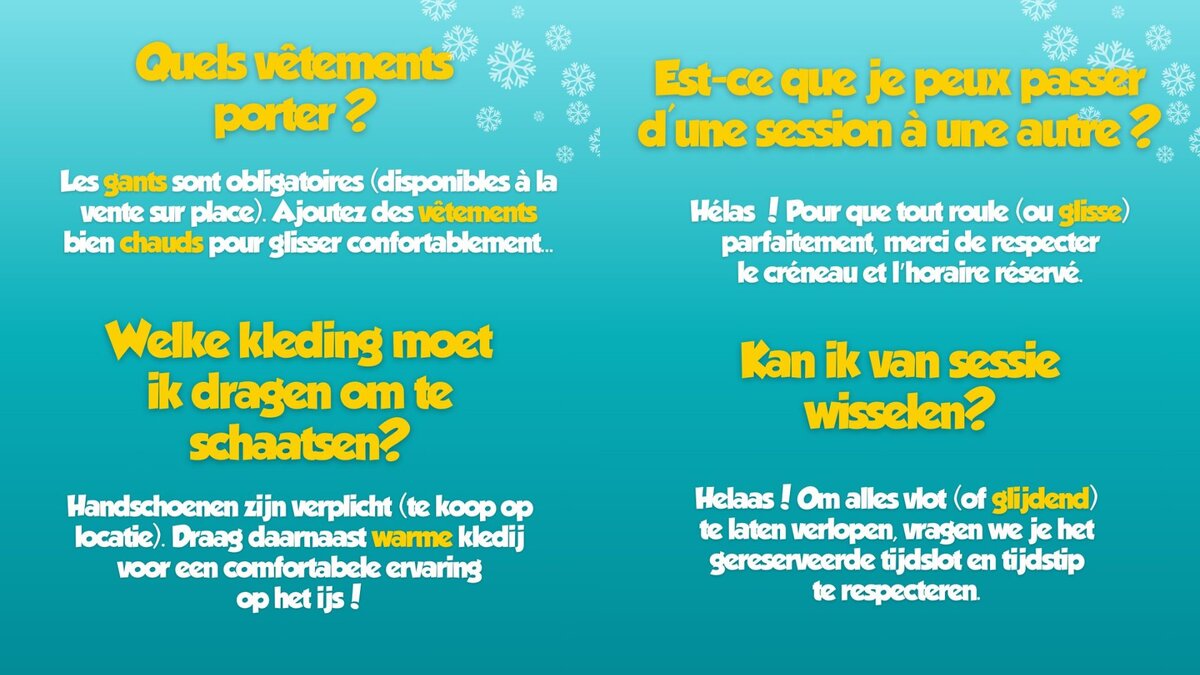 Het dragen van handschoenen is verplicht op de ijsbaan (te koop ter plaatse).