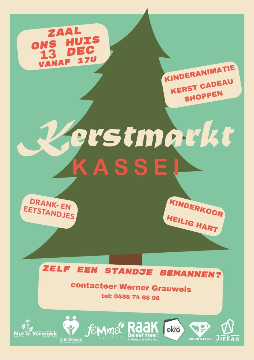 Wat zijn we blij om jullie opnieuw te verwelkomen op onze jaarlijkse Kerstmarkt. De verenigingen van 't Kassei slaan opnieuw de handen in elkaar en zorgen op zaterdag 13 december 2025 vanaf 17.00 uur voor verschillende standjes in zaal Ons Huis.