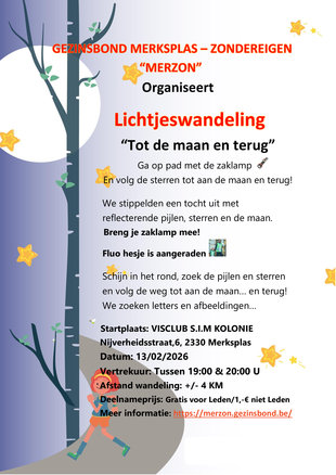Schijn in het rond, zoek de pijlen en sterren en volg de weg tot aan de maan… en terug !
