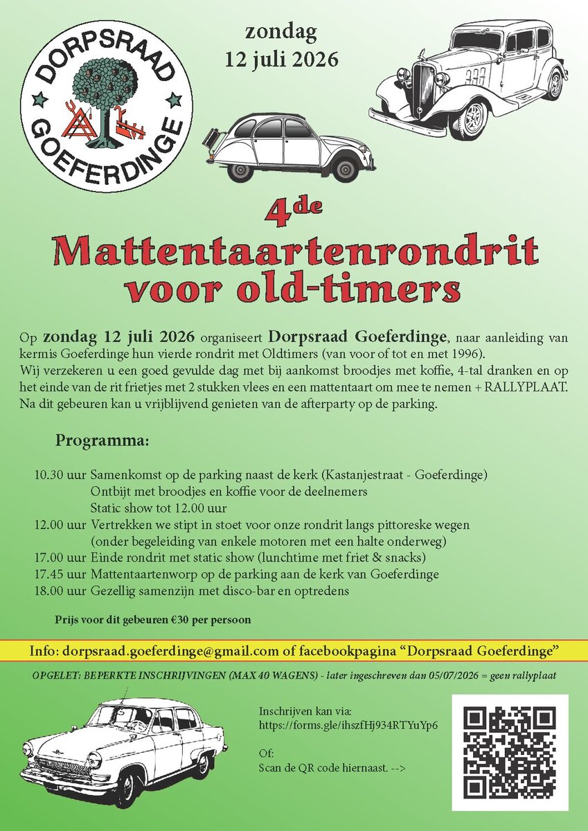 Op zondag 12 juli 2026 organiseert Dorpsraad Goeferdinge, naar aanleiding van kermis Goeferdinge hun vierde rondrit met Oldtimers (van voor of tot en met 1996).