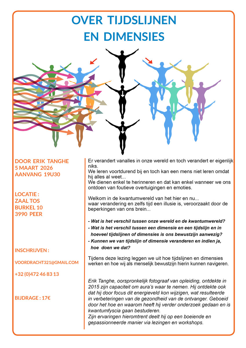 Tijdens deze lezing wordt er uitgelegd hoe tijdslijnen en dimensies werken en hoe wij als menselijk bewustzijn hierin kunnen navigeren.