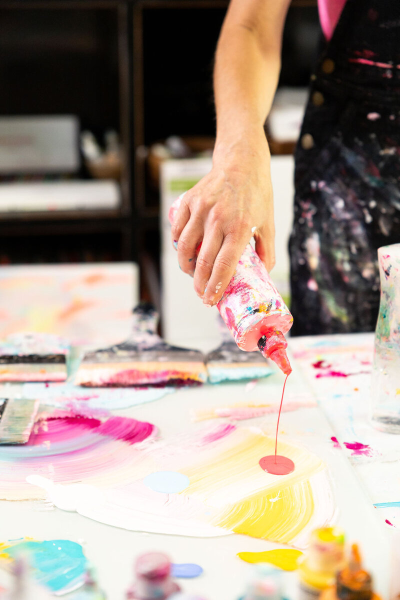 Dit is de ideale plek om te starten en meteen de basis van hoe ik werk: speels, vrij en zonder druk, met acrylverf.