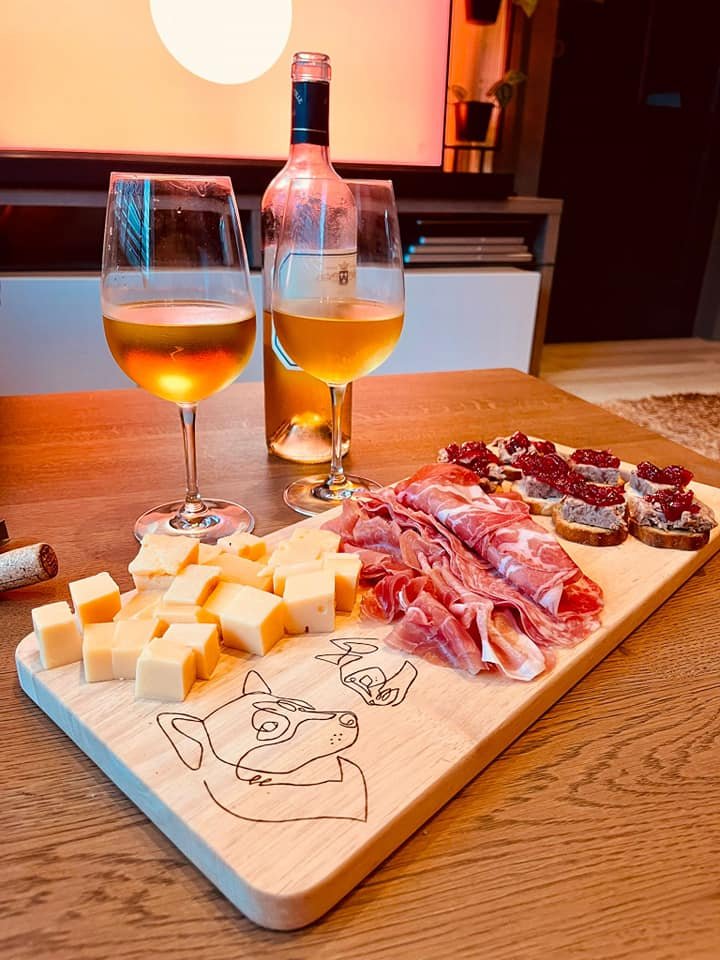 Bij binnenkomst proosten we op de liefde (en de vriendschap !) met een feestelijk glaasje cava. Je maakt elk je eigen unieke plank, perfect als gepersonaliseerd cadeau voor elkaar of als blijvende herinnering aan jullie date.