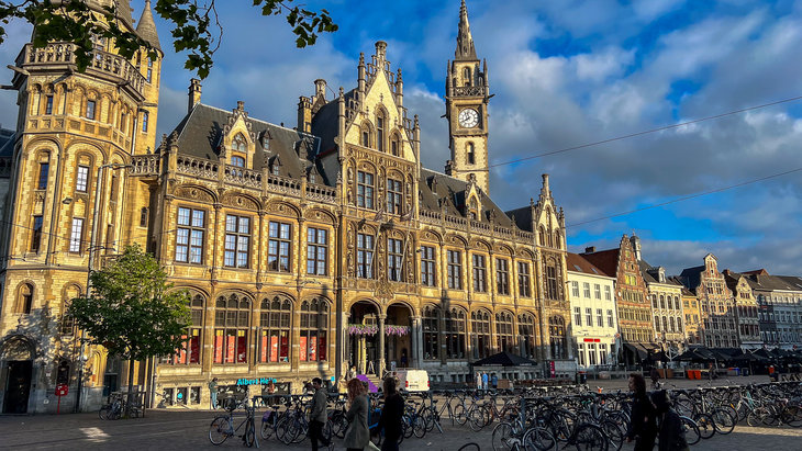 Gent, doordrenkt van historie, omarmt je bij de eerste stap op de kasseien. De middeleeuwse pracht, getuige van een glorieus verleden, strekt zich uit over de horizon. Oude kerken, met hun torens die de hemel kietelen, sieren de skyline als wachters van vervlogen tijden.