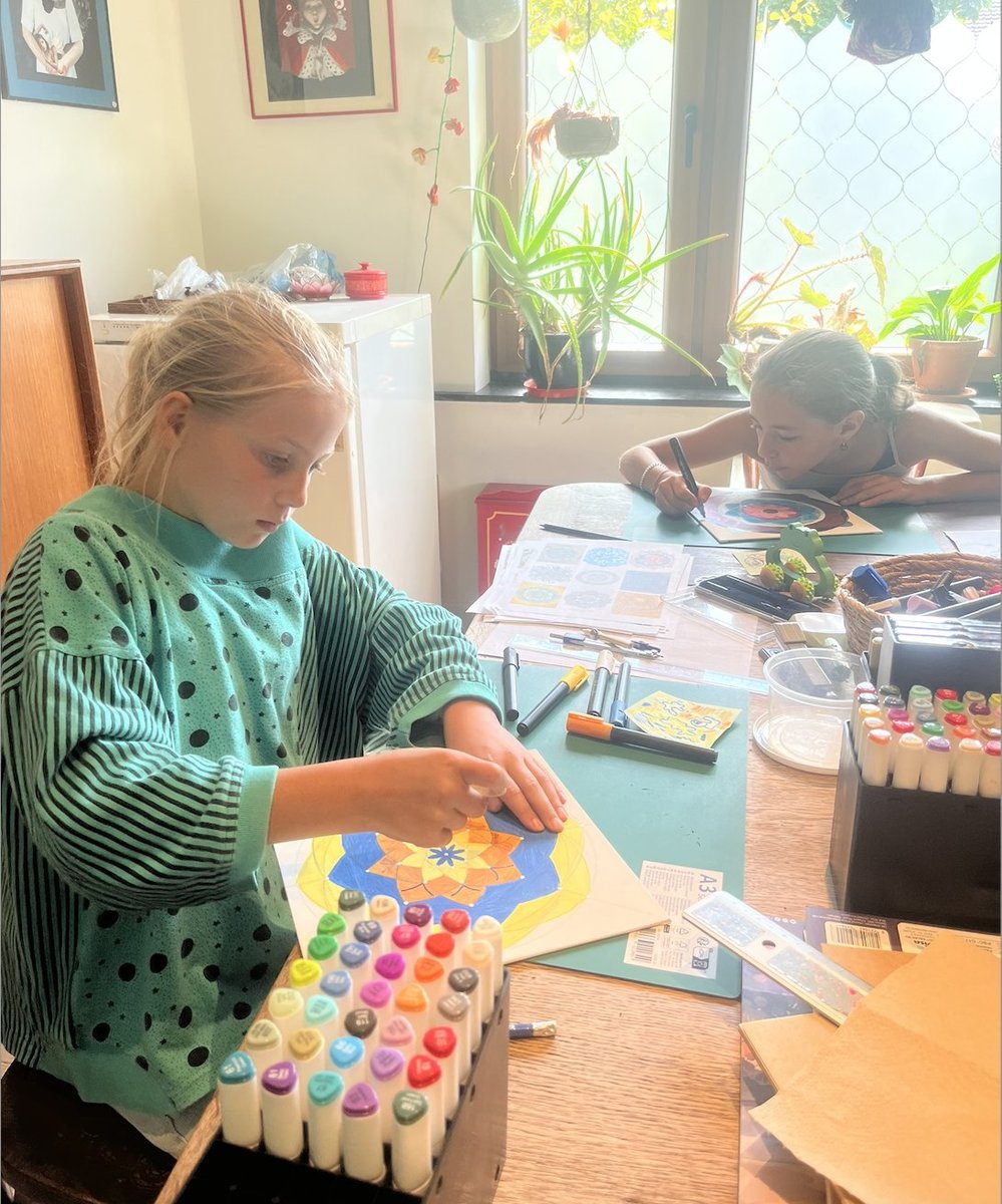 Tijdens deze workshop leer ik de kinderen zelf een mandala opbouwen en tekenen.