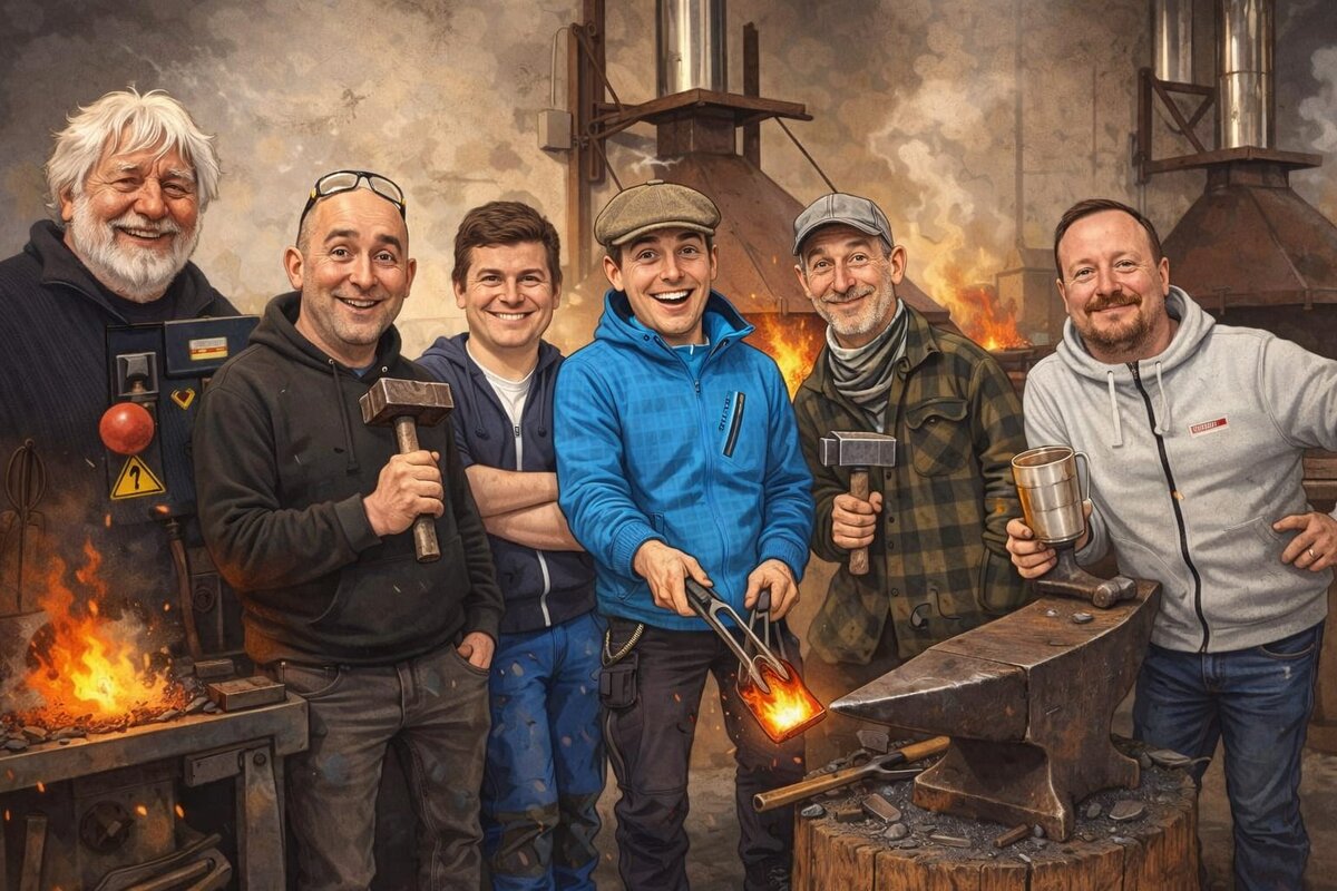 Er worden een paar bijzondere technieken gedemonstreerd zoals het harden van staal en het vuurlassen.