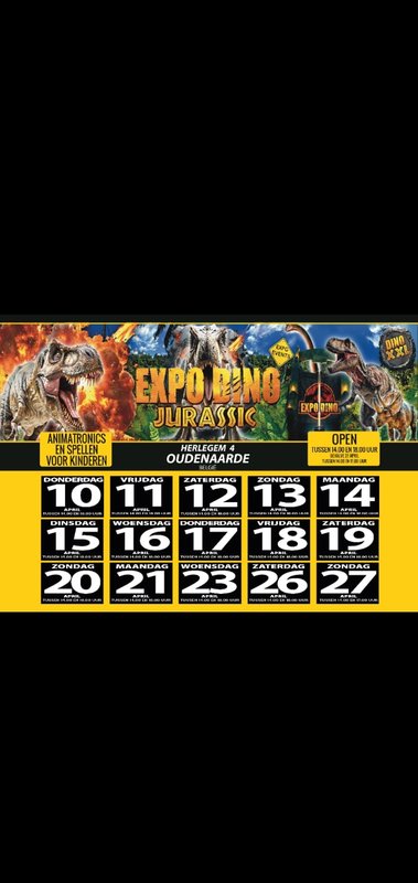 En expo van meer dan 50 dinosaurs die bewegen en geluit maken wij neemen u mee naar de tijt van de dinosaur 🦕 en dag uitstap met veel aniematie voor groot en Klein ook voor de kinderen onze groote speeldorp met dinosaurs van echt groote nog nooit gezien hier in Belgium 🇧🇪 kom u zelf verasen iedereen wel kom ook mogelijk voor u kind ze verjaardag feest te geven of personnel feest alles is mogelijk
